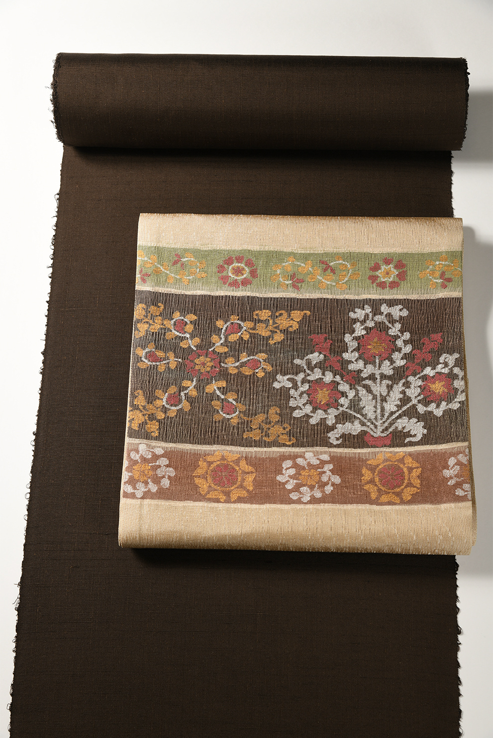 中央アジアは西と東の融合地点で、ウズベキスタンは、トルクメニスタン、タジキスタン、キルギス、カザフスタンとともに、その主要5カ国と呼ばれる国の一つです。これらの国々は、様々な民族と文明が混ざり合った魅力的な文化をもっています。ウズベキスタン段文と名付けられたこの袋帯はアジア・中東の文様文化に造詣の深い三風魯が製作した、ロシア的、ペルシア的、中国的ロマンを感じさせる民芸色の強い温かみのある帯です。