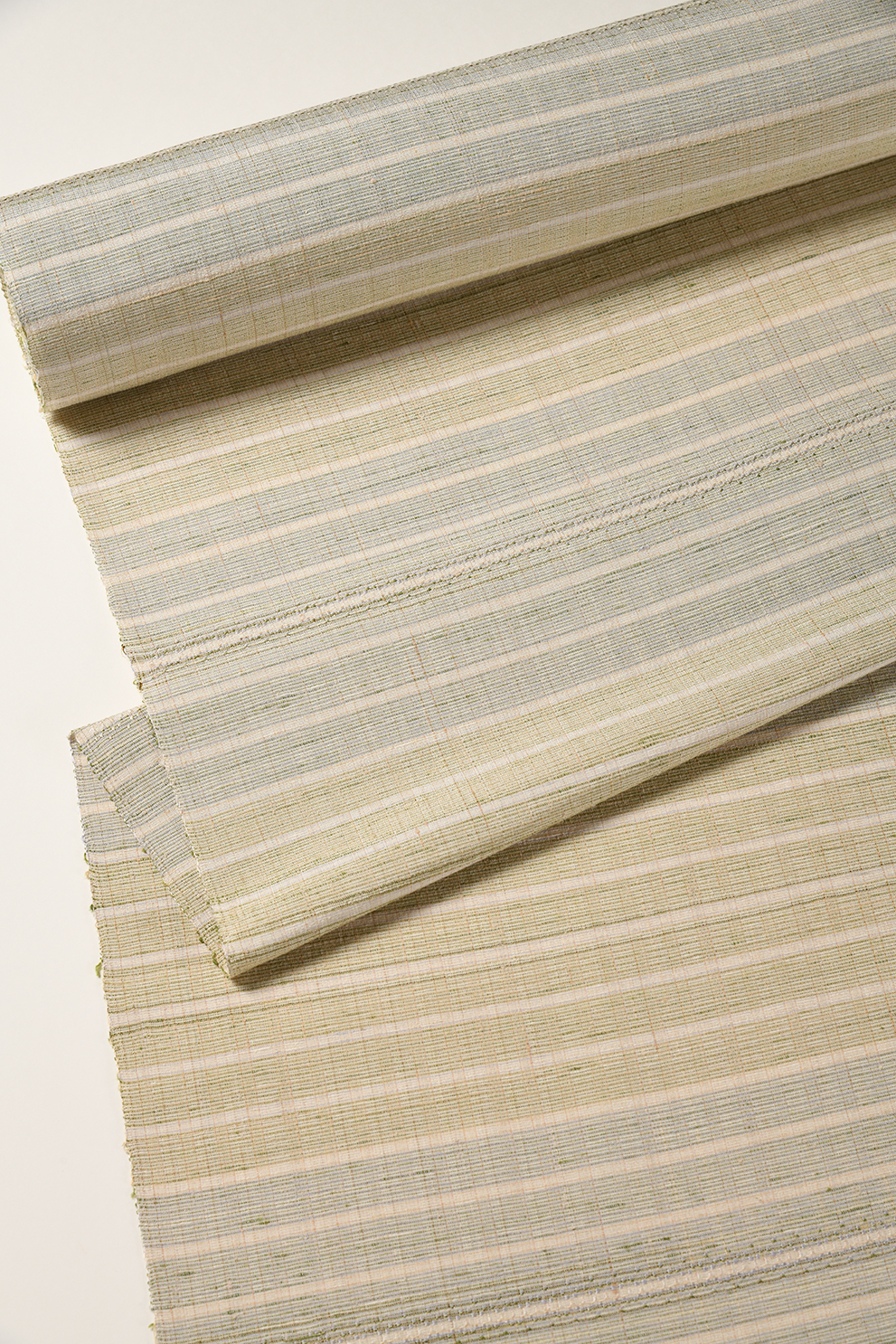 蚕の一番外側の硬い糸を生皮苧(きびそ)といいますが、通常捨ててしまうこの部分の糸を使った雰囲気のある魅力的な名古屋帯に出会いました。