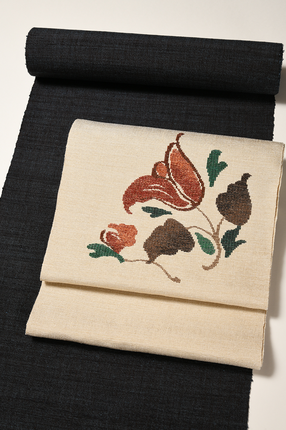 ※本作品は、染めにくく、手間のかかる木綿の帯を特別に復刻してつくっていただいた貴重な作品です。