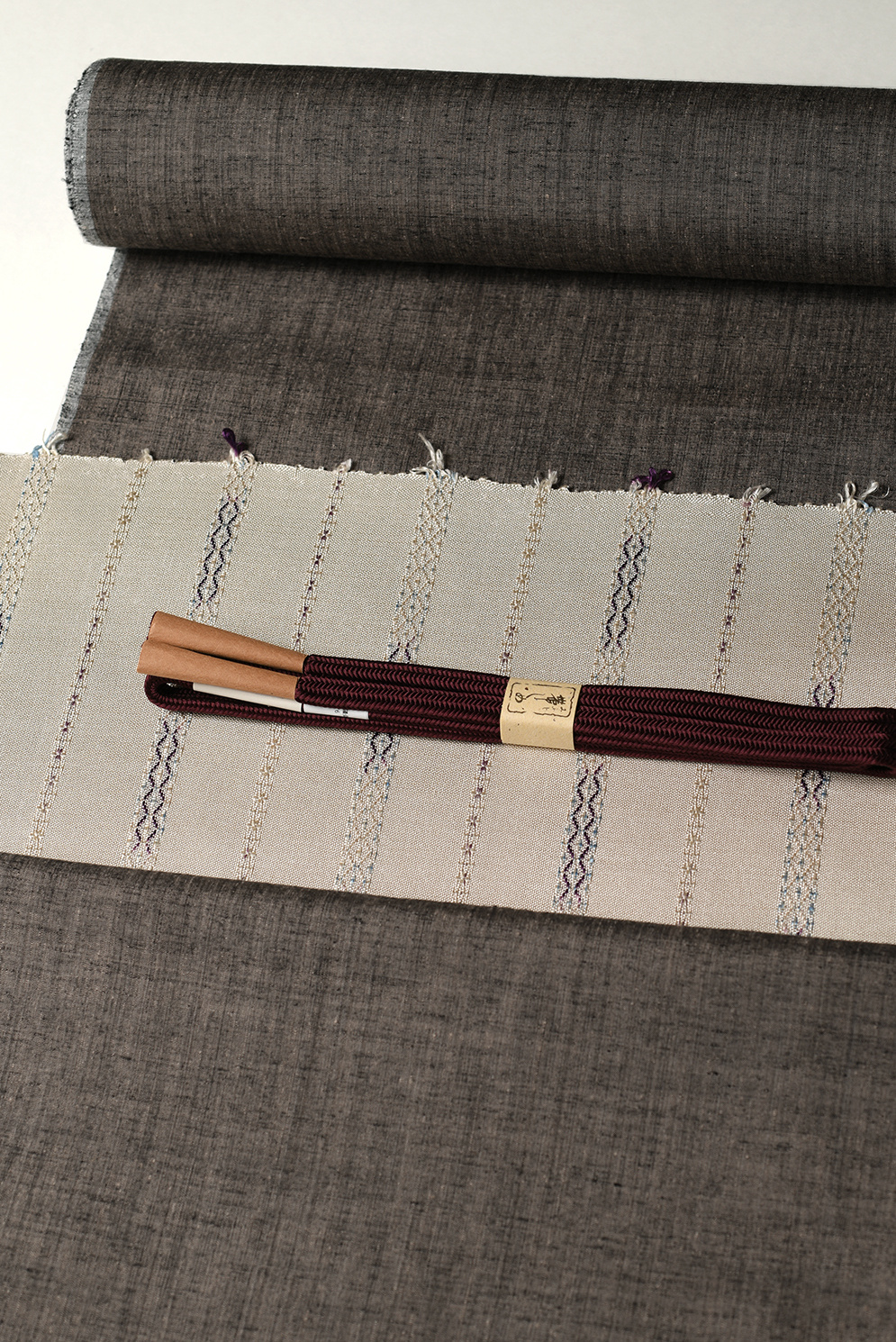 100%国内で手引きした真綿糸を使用し縦糸を腰に掛けて織る「地機」で織り上げられた風合いの良い結城紬に染織作家、柳崇さんの名古屋帯を合わせました。すっきりと洗練された都会的な装いの中に手仕事の温かみが感じられる工藝きもののおしゃれの楽しみを凝縮したような一揃えです。