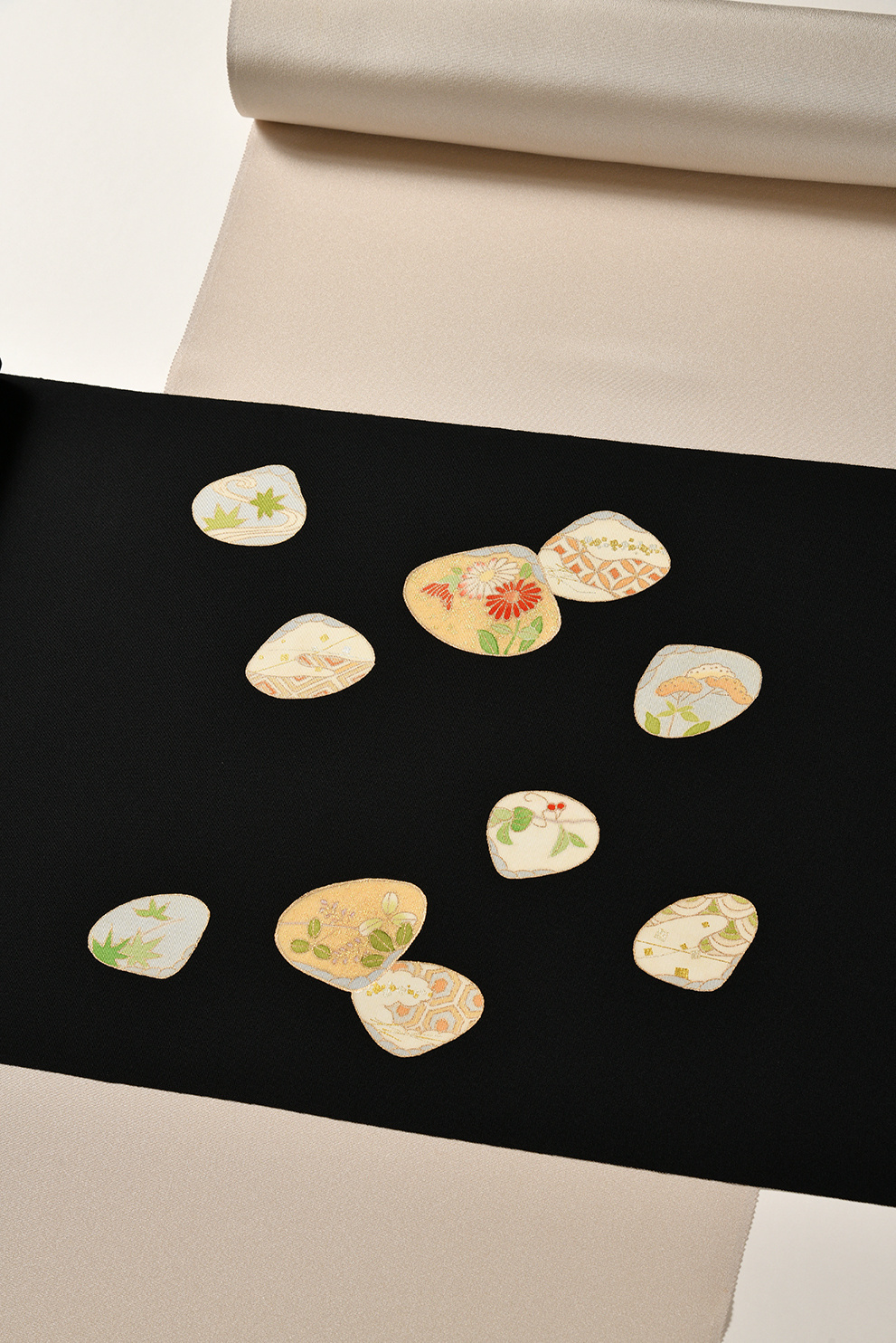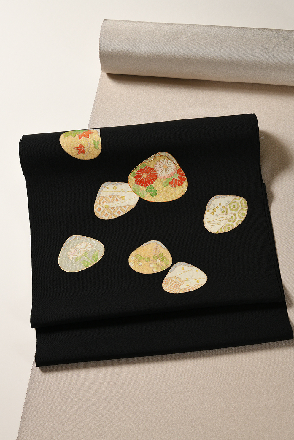 [名古屋帯]京友禅 塩瀬黒地 蛤散らし