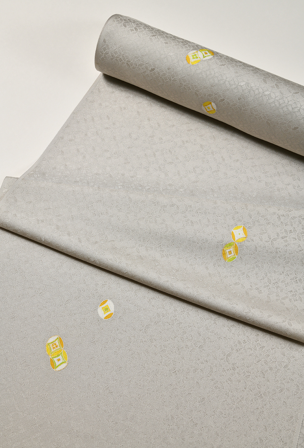 西陣の紋織物第一人者として有名な山口伊太郎氏創業の「紫紘」の織名古屋帯です。創業者、伊太郎氏の意匠であるこちらの帯は世代を超えて愛され続ける美しく上質で格調高い名作です。迷いましたが、今回は袋帯ではなく、名古屋帯でお願いしてみました。